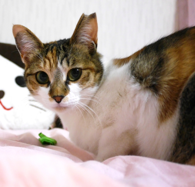 ただし、他の猫に対してはプライド高き「三毛猫気質」が出るようで、できればひとりっ子としてかわいがっていただけるご家庭を希望します