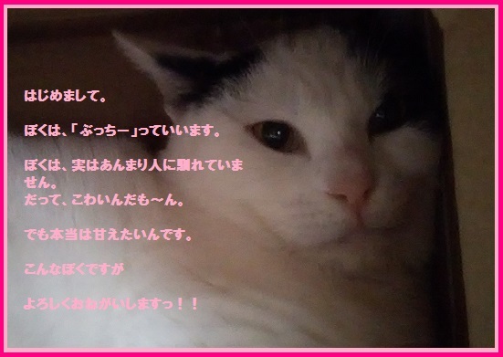 私の経験上、白黒の猫は甘えん坊で人大好きな子が多いのでぶっちー君も愛情をかけて頂けるときっと可愛い甘ったれになると思います!!