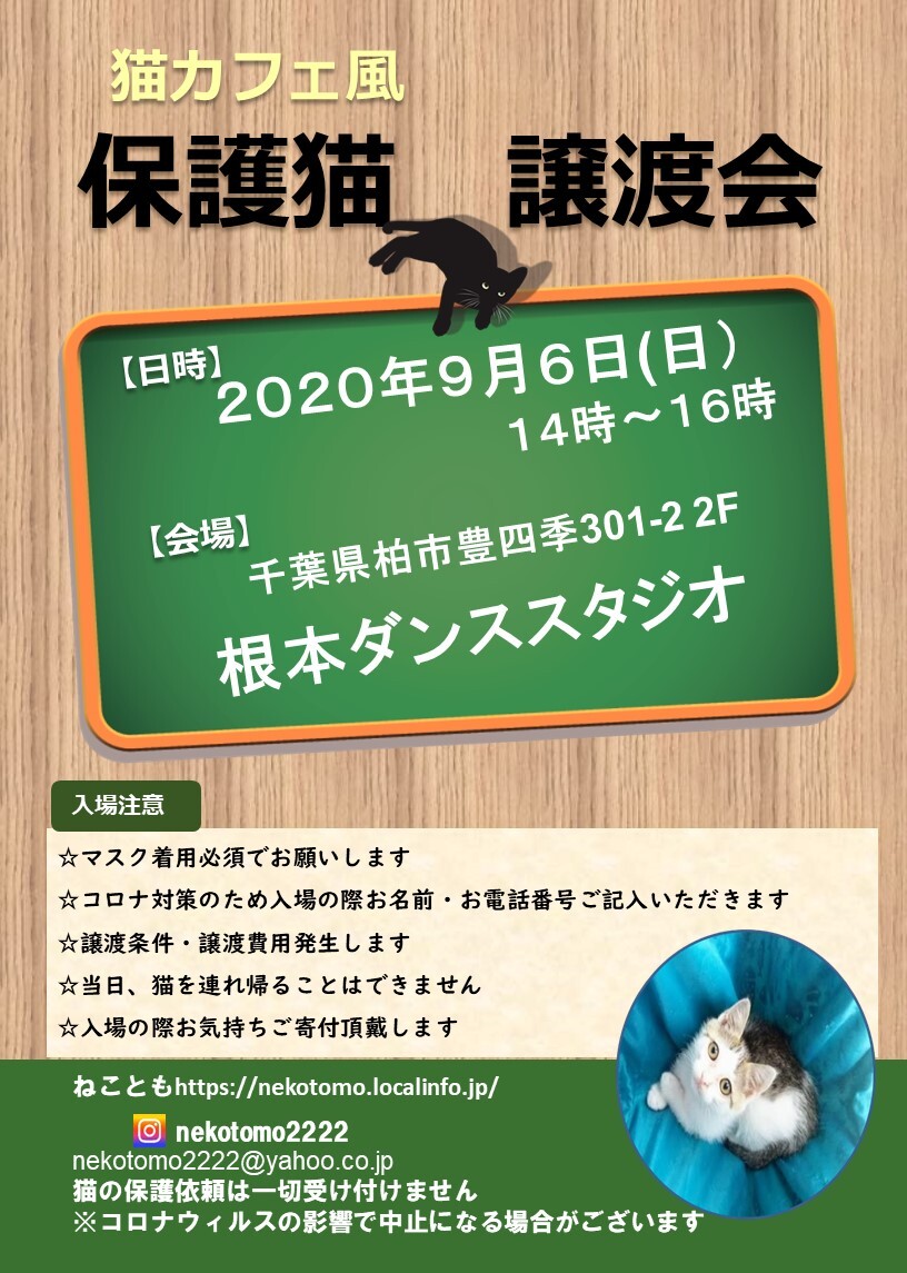 9/6(日)猫カフェ風保護猫譲渡会