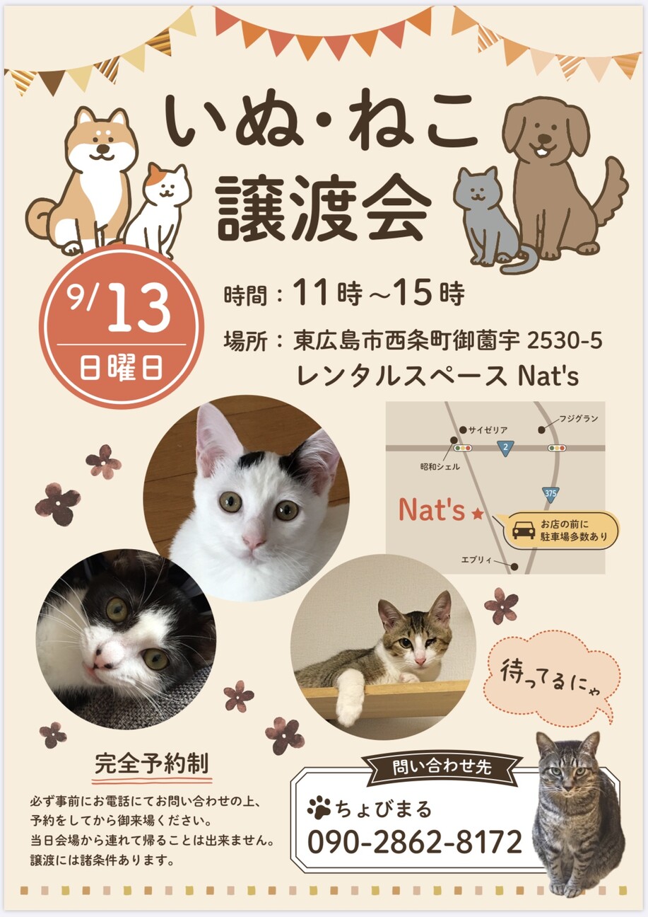 広島県内で団体や個人の保護活動者に保護された犬と猫が、ずっとのお家を探しています