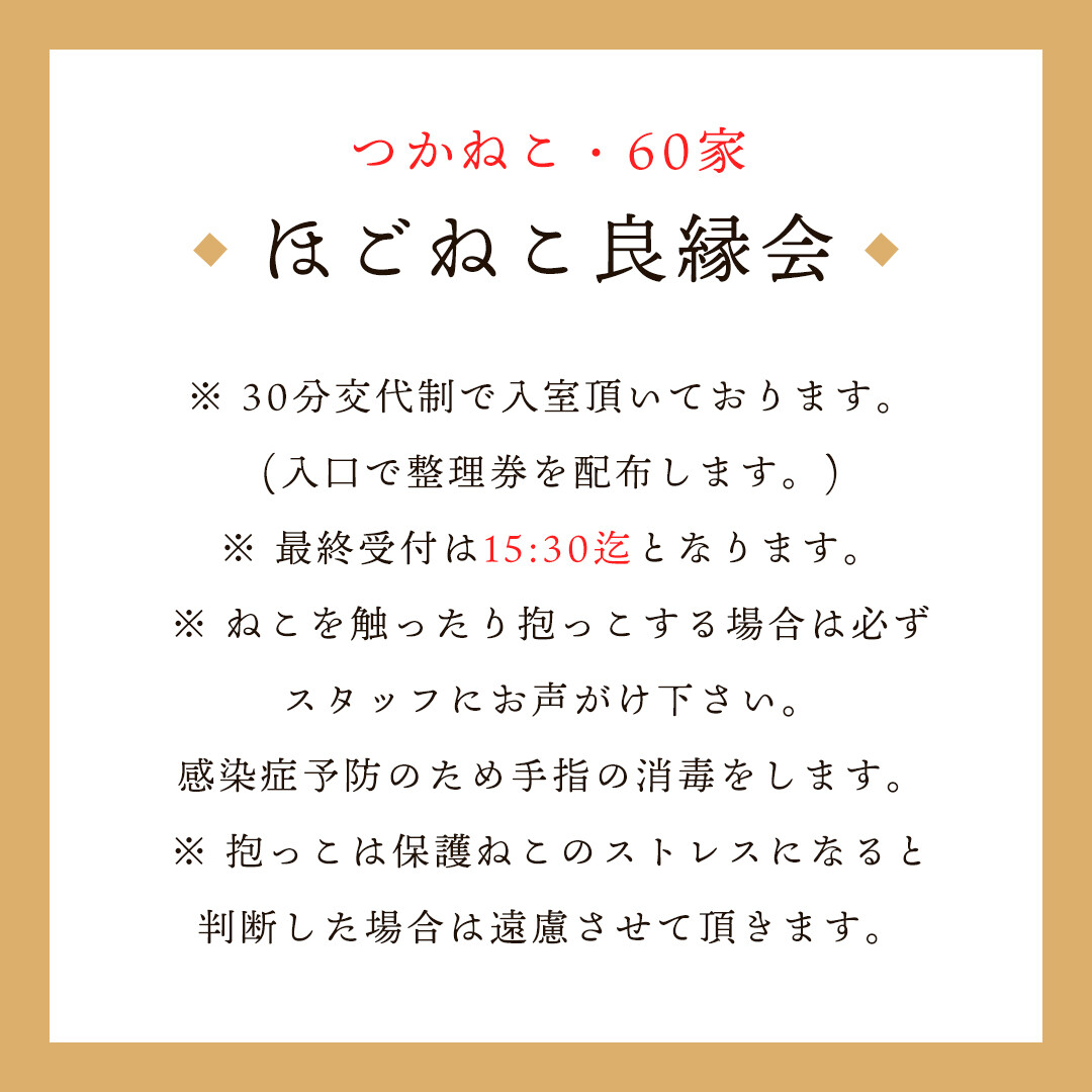 ※猫を触ったり抱っこする場合は必ずスタッフにお申し付け下さい。
