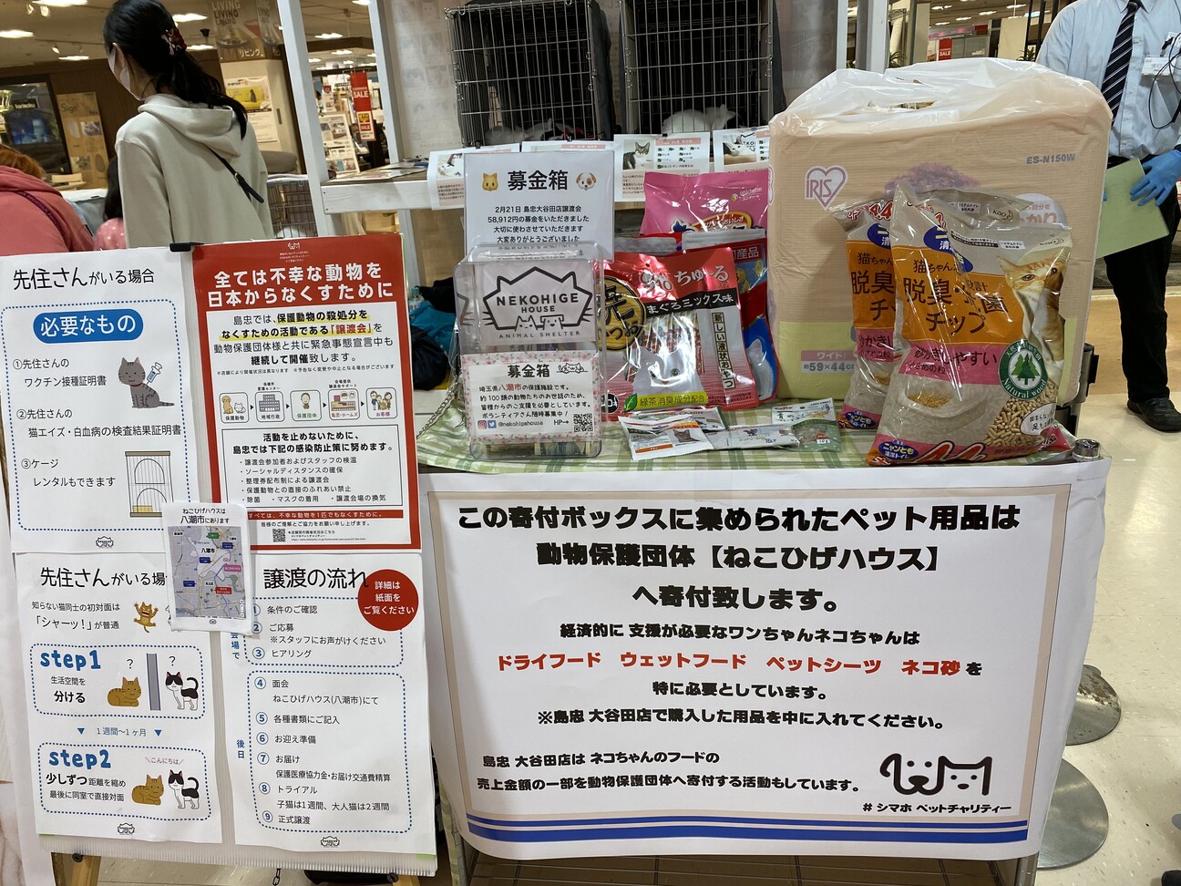 ねこひげハウスには現在約80頭の保護動物がいます。頭数は日々変化しております。そのうちの一部になってしまいますが、島忠大谷田店さんにて譲渡会に参加させていただきます。