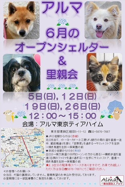 6月28日(日)、ティアハイムオープンシェルター里親会を開催します。