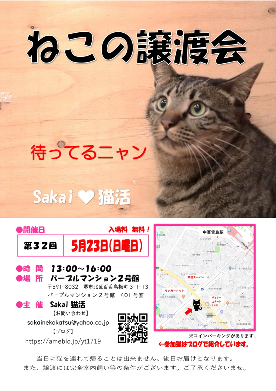 Sakai♥猫活の譲渡会です。 私たちは大阪府堺市を中心に保護猫活動をしています。