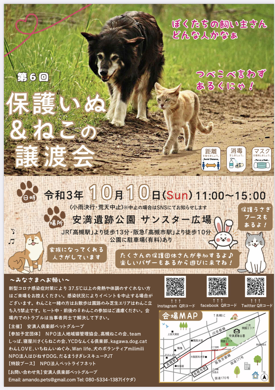 久しぶりの安満遺跡公園での譲渡会!コロナ対策徹底して開催します!