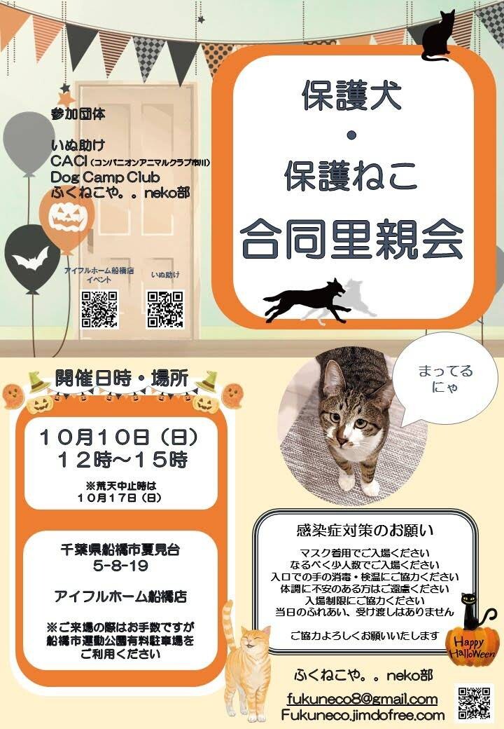 千葉県船橋市開催/保護ねこ、保護いぬ合同里親会