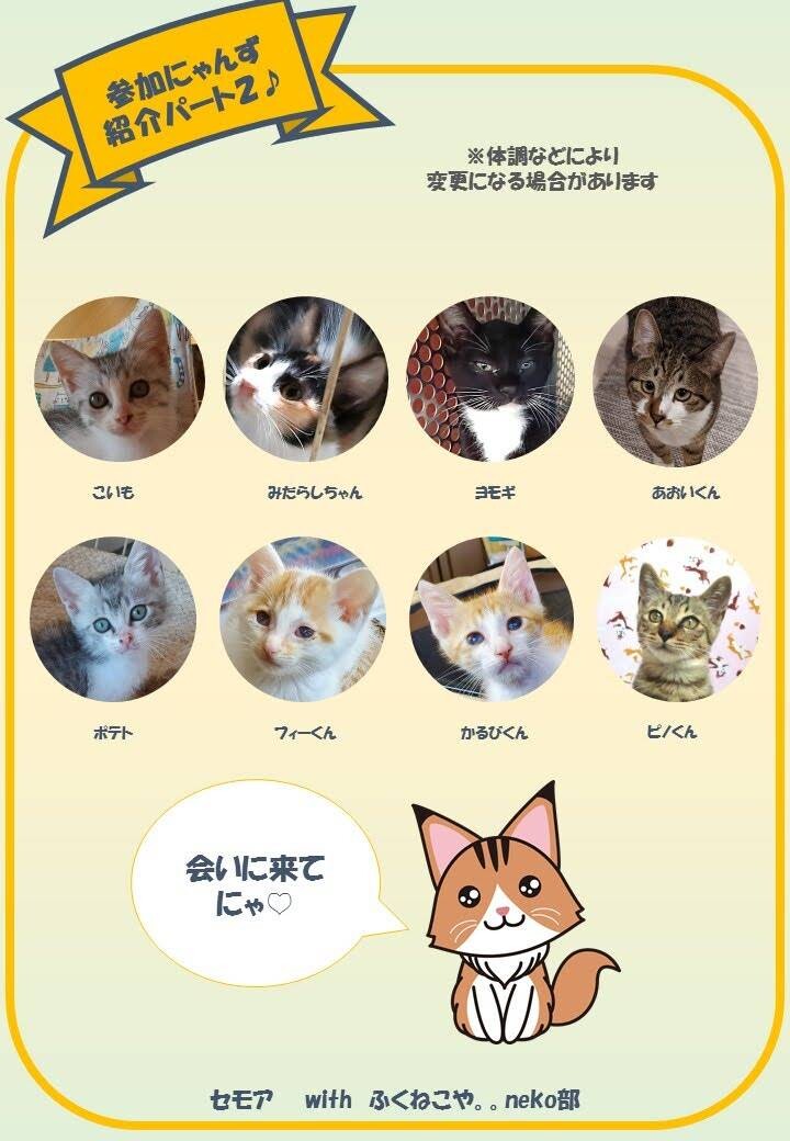 1か月半~7ヶ月までの子猫約20頭が新しい家族との出会いを求めて参加します(^-^)