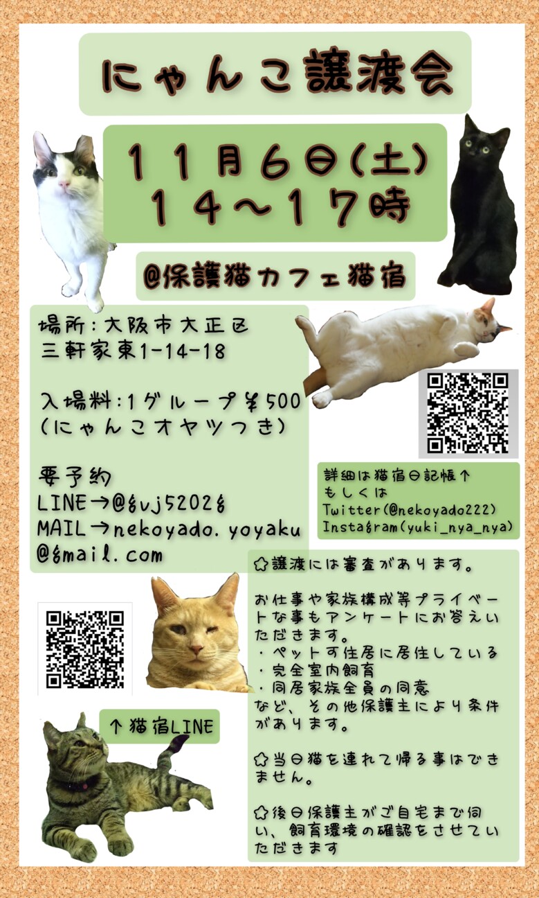 詳細は「猫宿日記帳」にて随時お知らせしていきます(*’ー’*)ノ