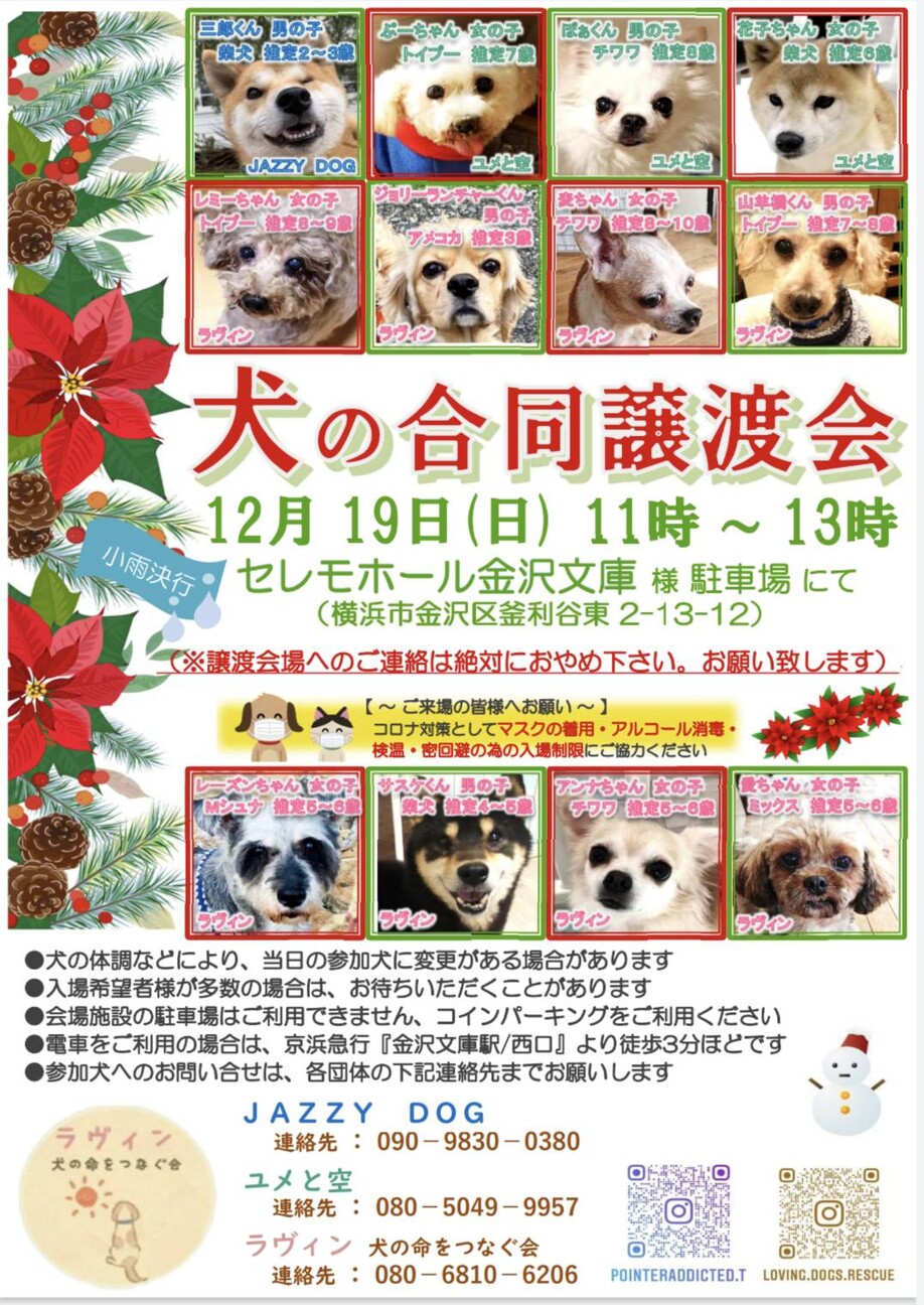 参加犬へのお問合せは、イベント情報ポスターに記載してあります各団体の連絡先までお願いいたします。