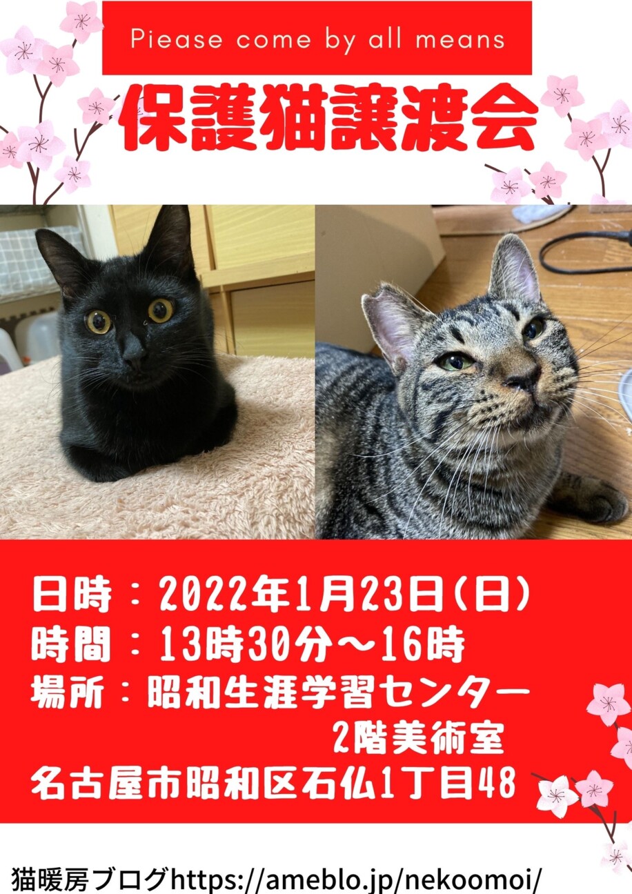 譲渡会会場はお借りしているだけですので 会場へのお問合せはご遠慮下さい。