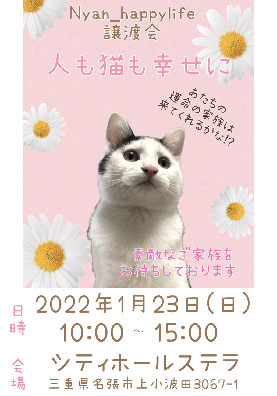 三重県名張市で譲渡会を開催します! 人も猫も幸せになれる…♡ そんなご縁を繋げたら(*˘︶˘*).。.:*♡ とおもっております♡ かけがえのない家族として迎えてくださる方、是非、会場でお会いできるのを楽しみにしております⁽⁽ଘ( ˊᵕˋ )ଓ⁾⁾