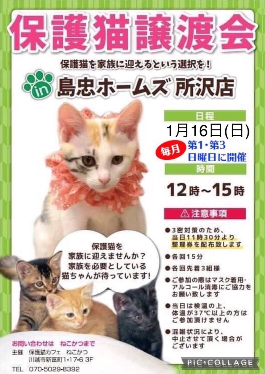 毎月第4日曜日に、保護猫カフェ「ねこかつ」さん主催の譲渡会を開催しています。子猫から成猫まで沢山の猫達が参加予定です。【注意事項】・マスク着用、アルコール...