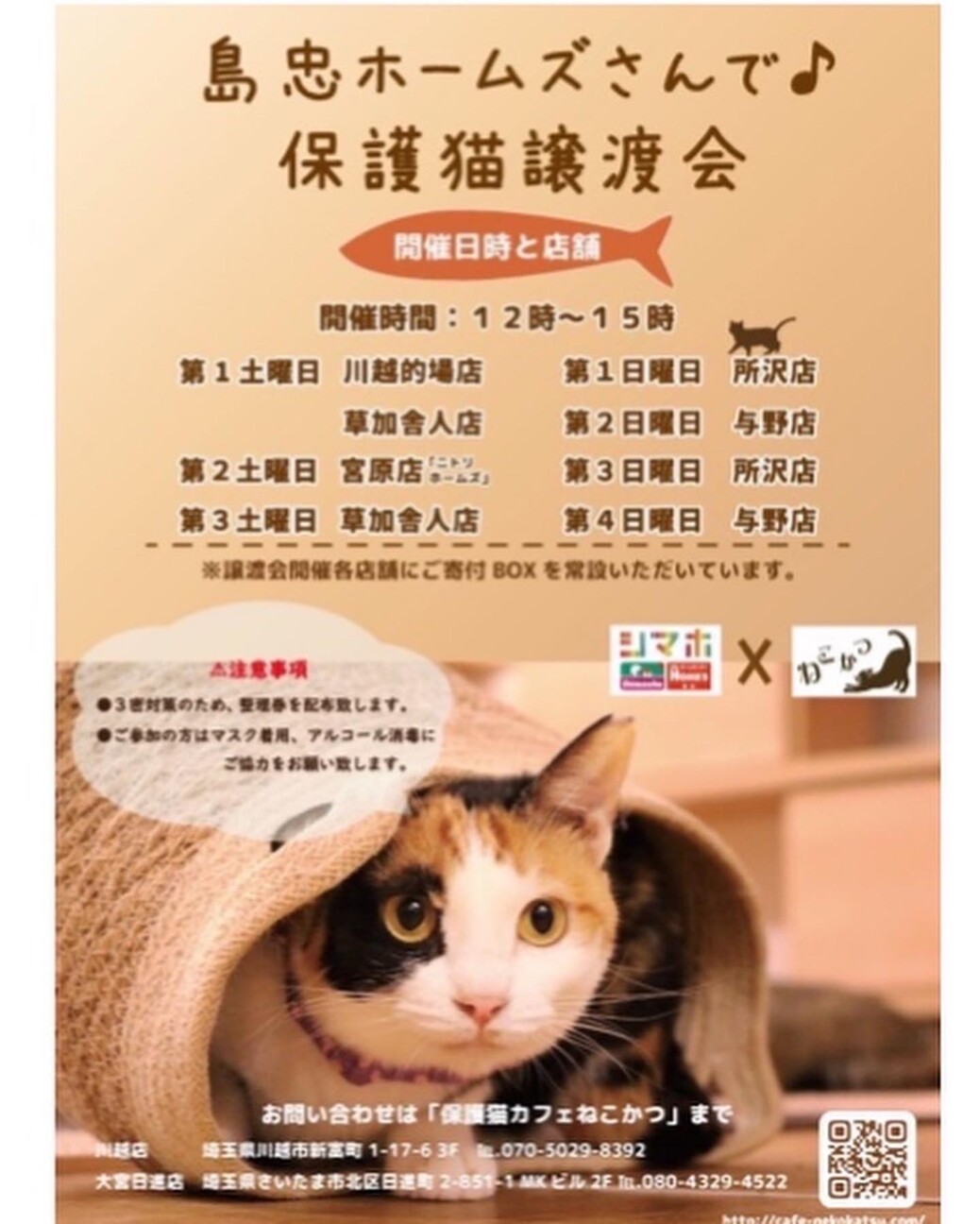 保護猫カフェねこかつさん主催の保護猫譲渡会です