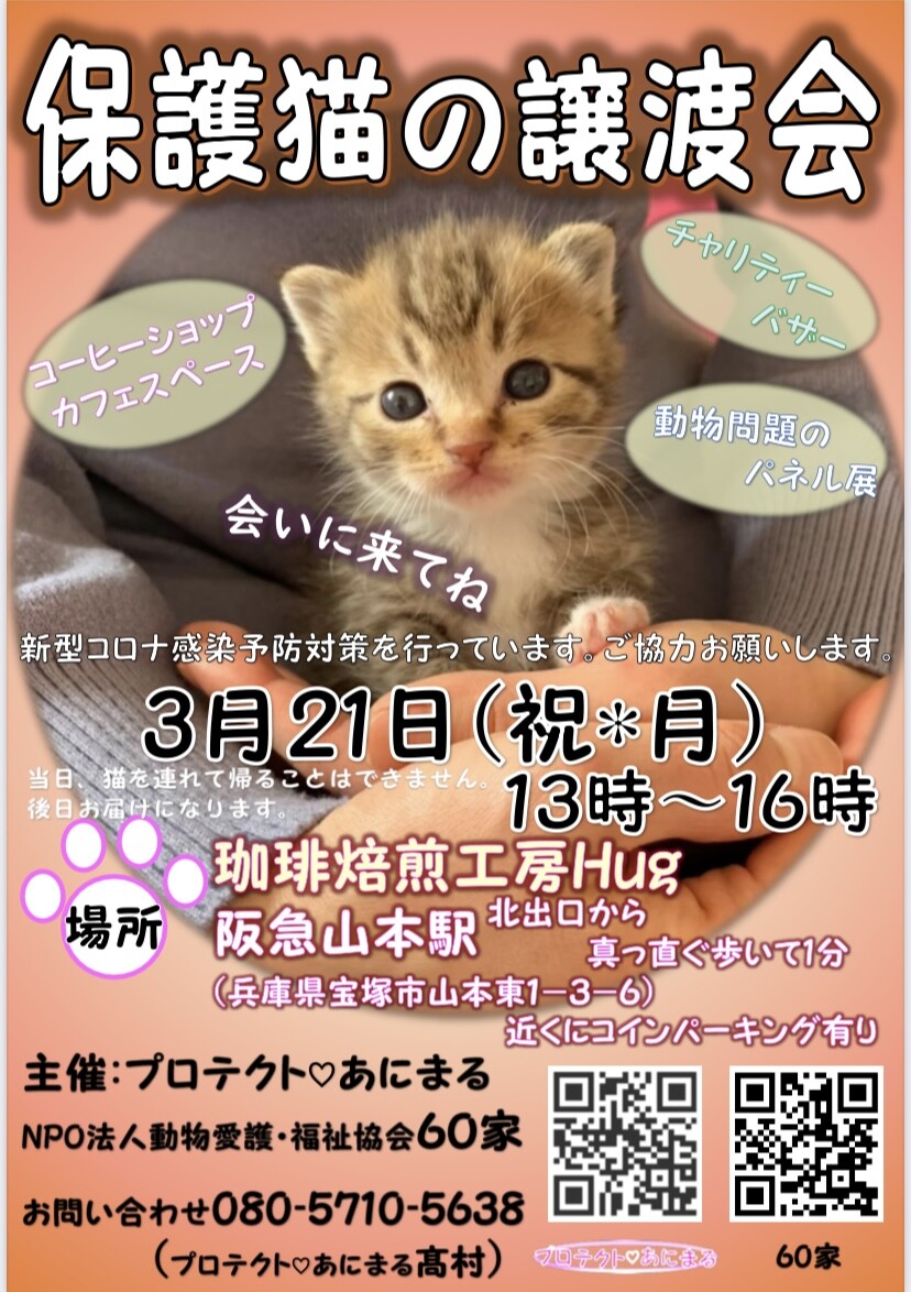 ◆日時:10月5日(日)◆時間:14時~16時◆会場:阪急「山本駅」北出口より徒歩1分宝塚市山本東1丁目3-6◆入場無料ずっとの家族を探しています。