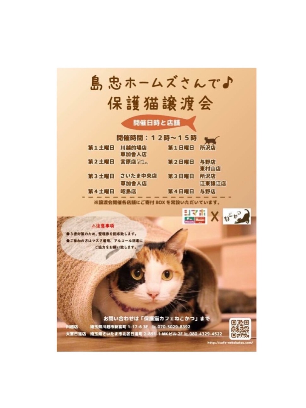 保護猫カフェねこかつさん主催の保護猫譲渡会です