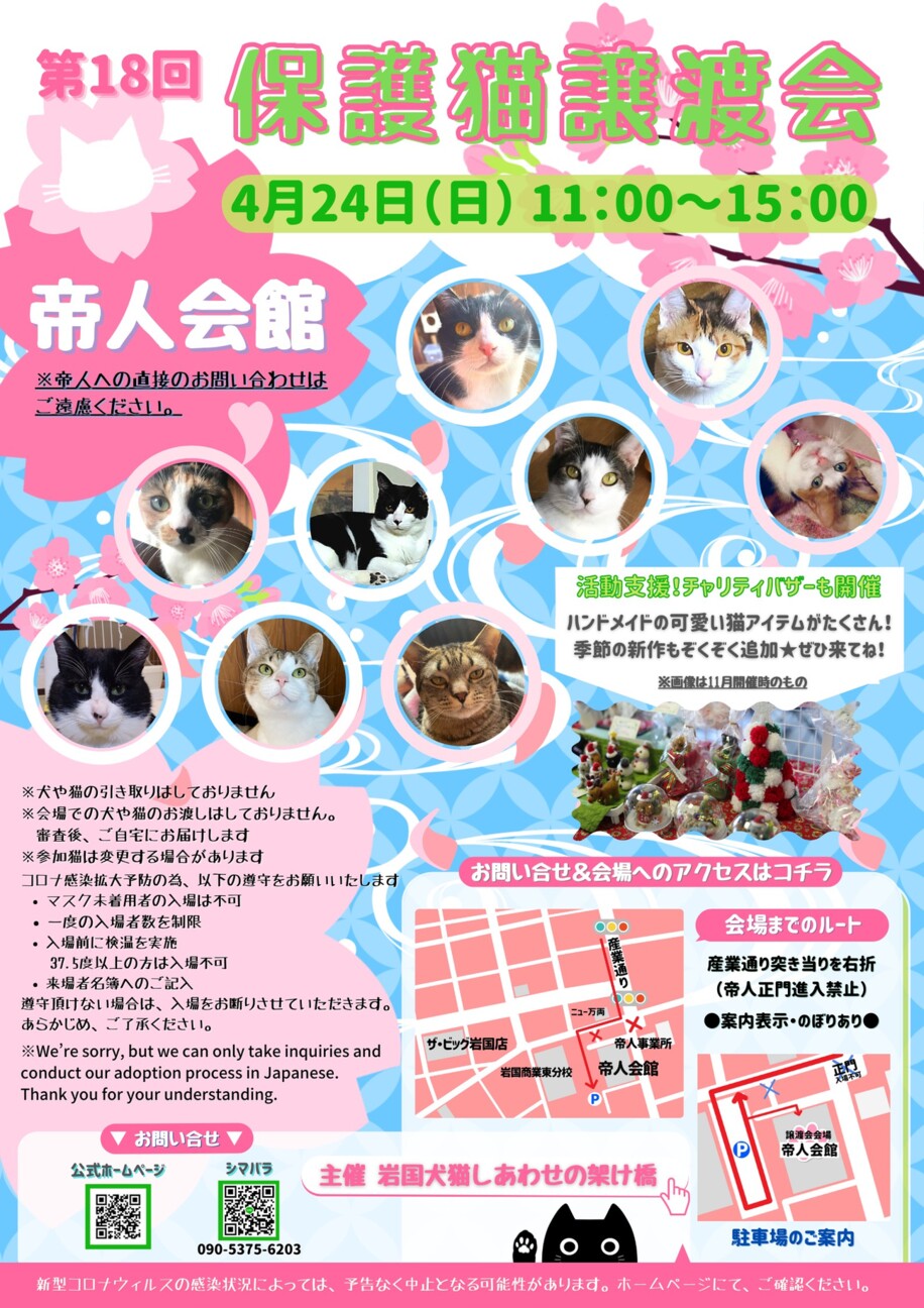 5月も譲渡会開催します!たくさんの保護猫ちゃんが参加予定。里親様とのご縁を待っています。同時に主にハンドメイド作品の保護活動支援チャリティバザーも開催。今...