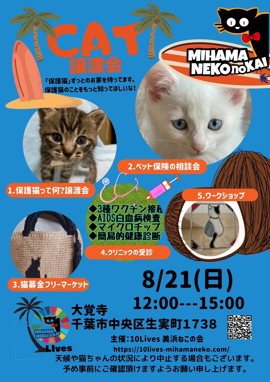 千葉市中央区の大覚寺にて猫ちゃんの譲渡会を開催します。
