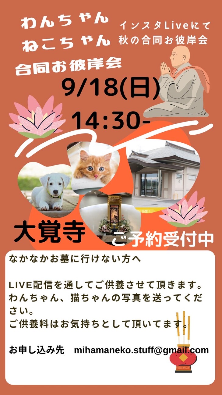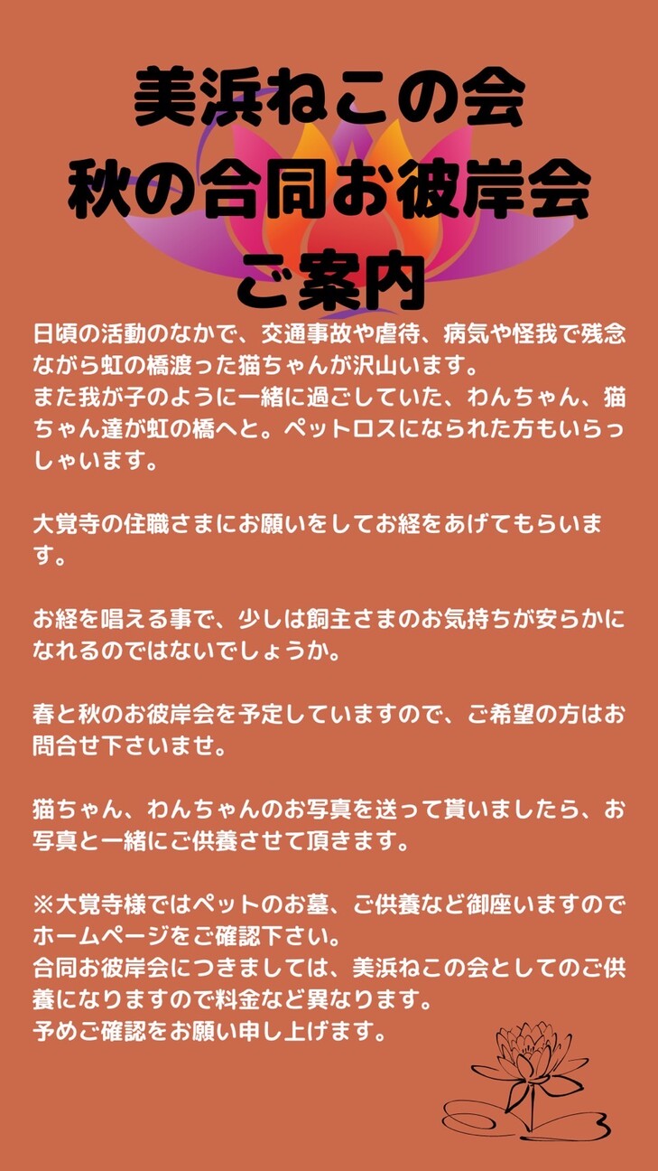 お写真を送っていただけましたら合同お彼岸会で供養させていただきます。