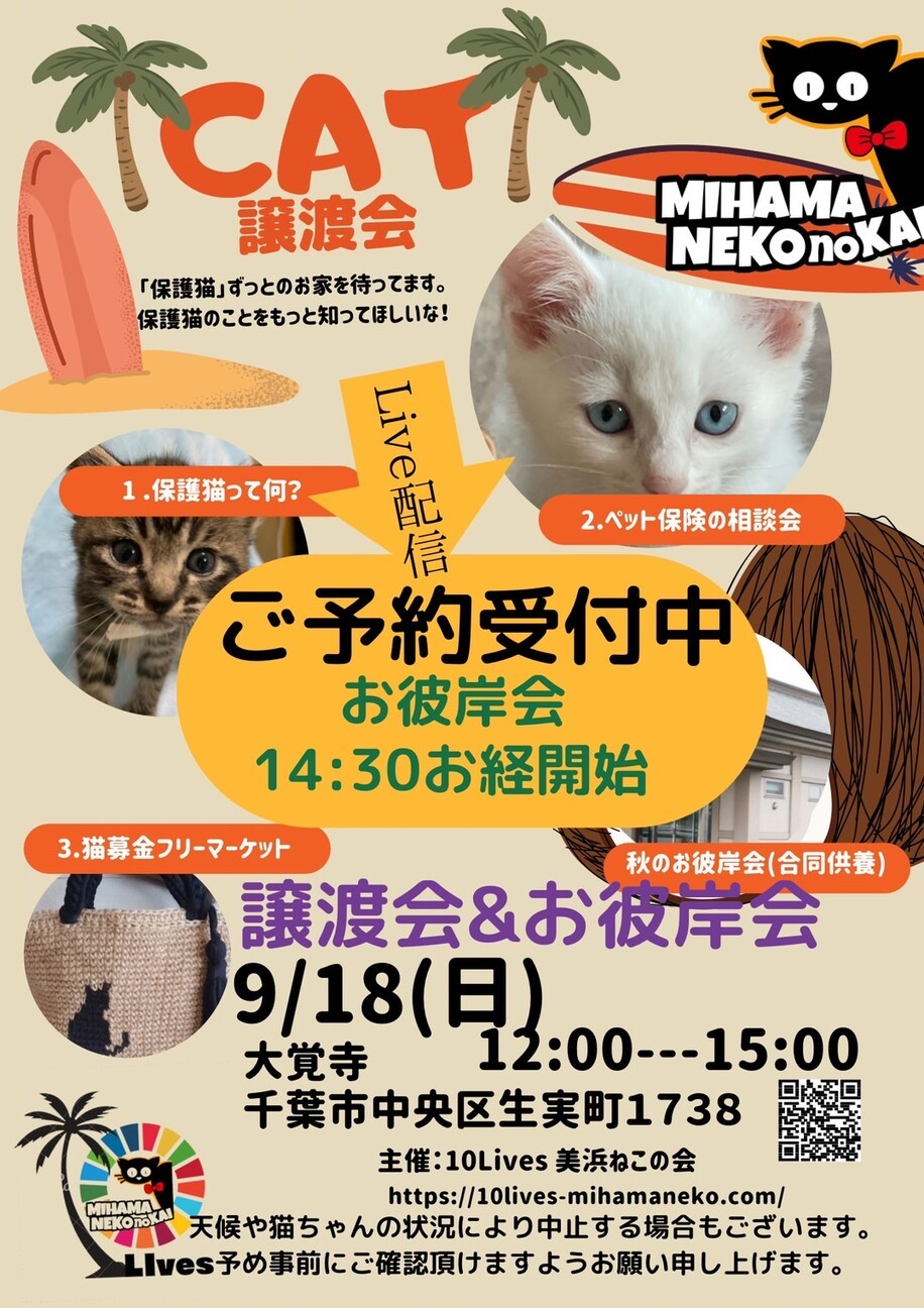 千葉市中央区の大覚寺にて猫ちゃんの譲渡会を開催します。