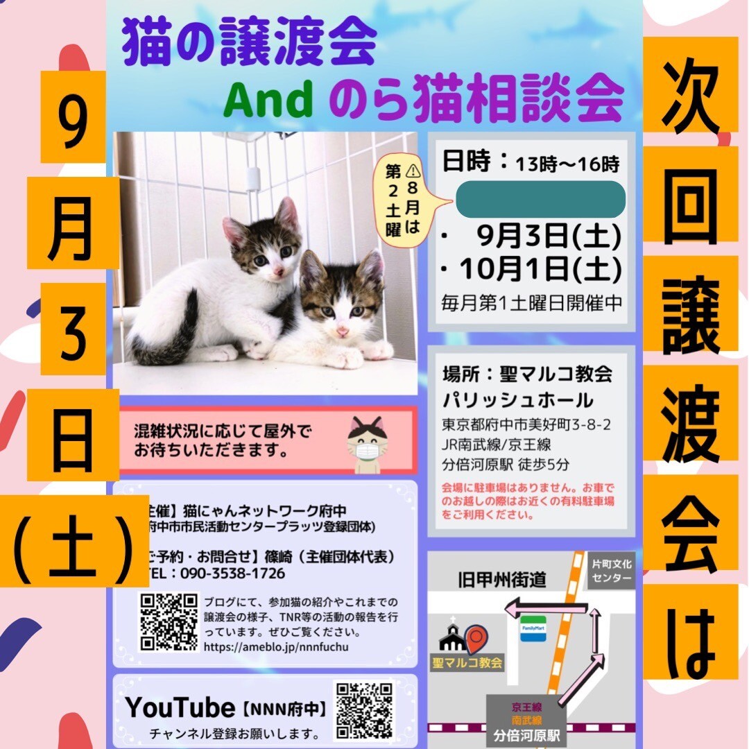 猫にゃんネットワーク府中★譲渡会andのらねこ相談会