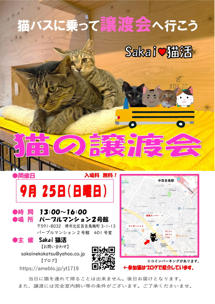 Sakai♥猫活の譲渡会です。 私たちは大阪府堺市を中心に保護猫活動をしています。