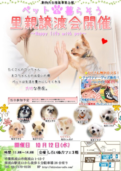 ※当日の参加犬猫情報はイベント前日にペットと暮らそうの公式SNSで告知いたします。インスタグラム(@with_pets)※当日までに譲渡が決まったり、体調...