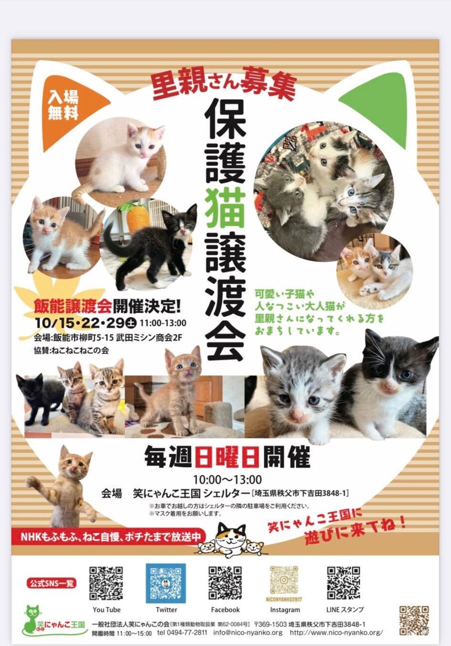 主催: 埼玉県 譲渡認定団体 ねこ猫ネコの会