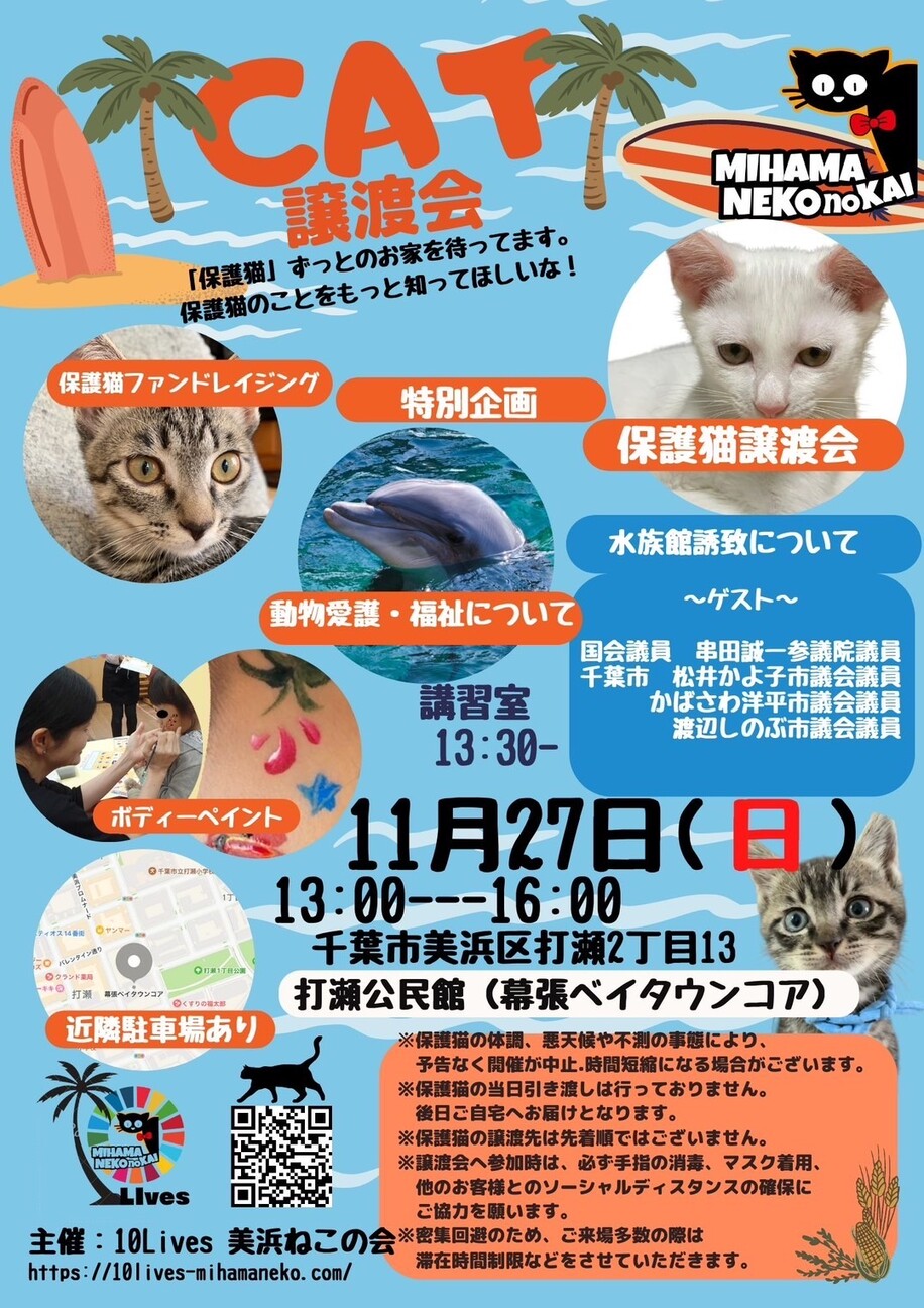 美浜ねこの会 保護猫の譲渡会です。