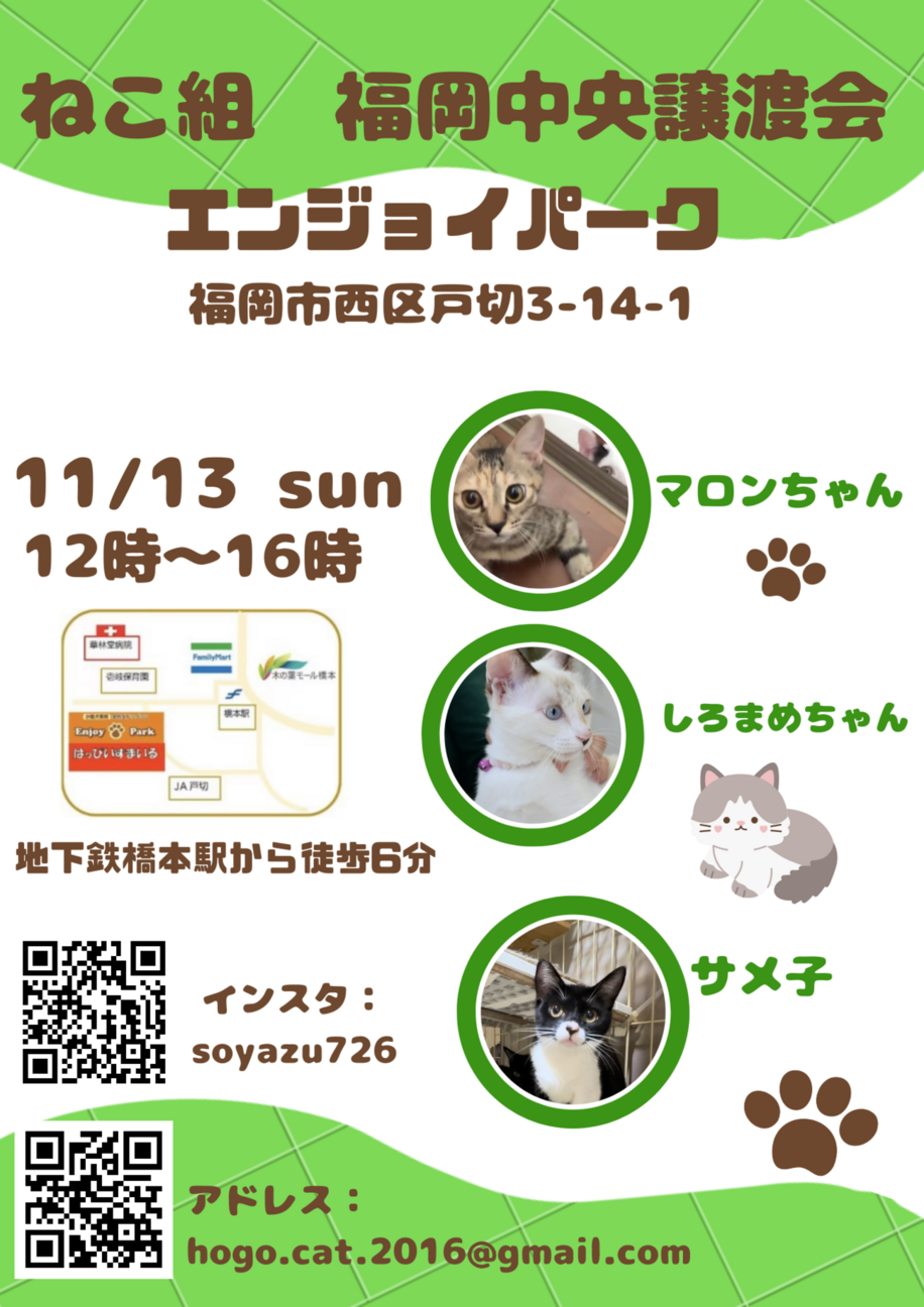 ねこ組福岡中央譲渡会atエンジョイパーク
