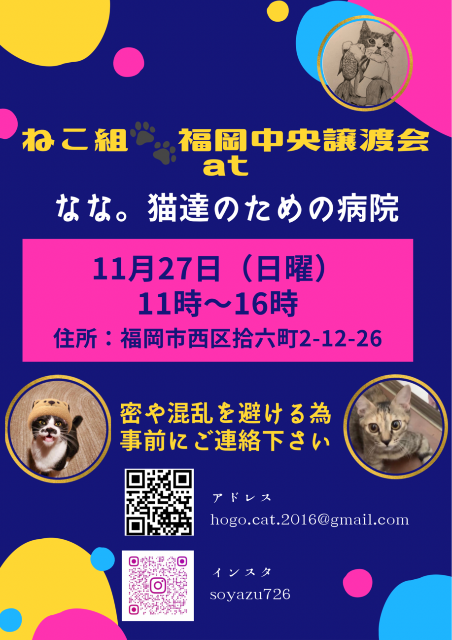 ◎応募可能地区…子猫は近隣(車で3〜40分程度)1歳を超える成猫は保護主にご相談下さいませ。