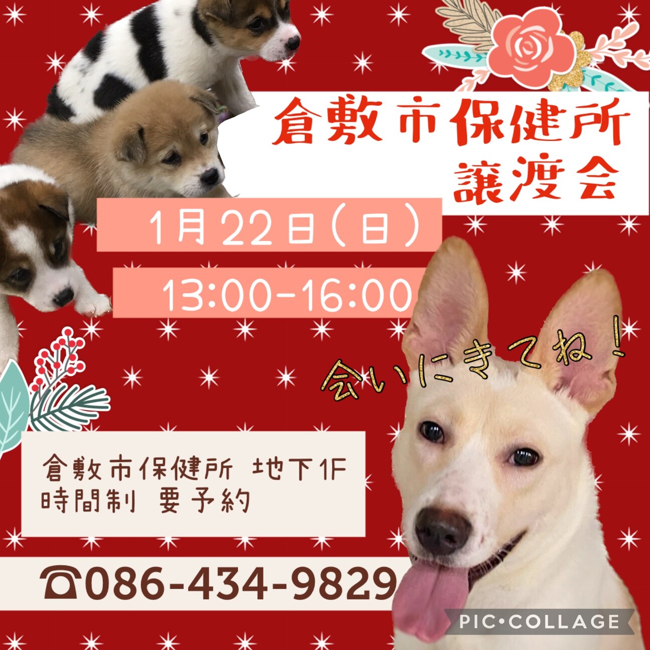 倉敷市保健所より1月の譲渡会のお知らせです。