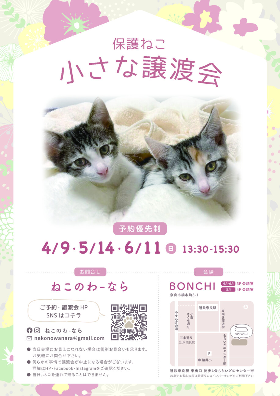 ねこのわ-なら 保護猫 小さな譲渡会