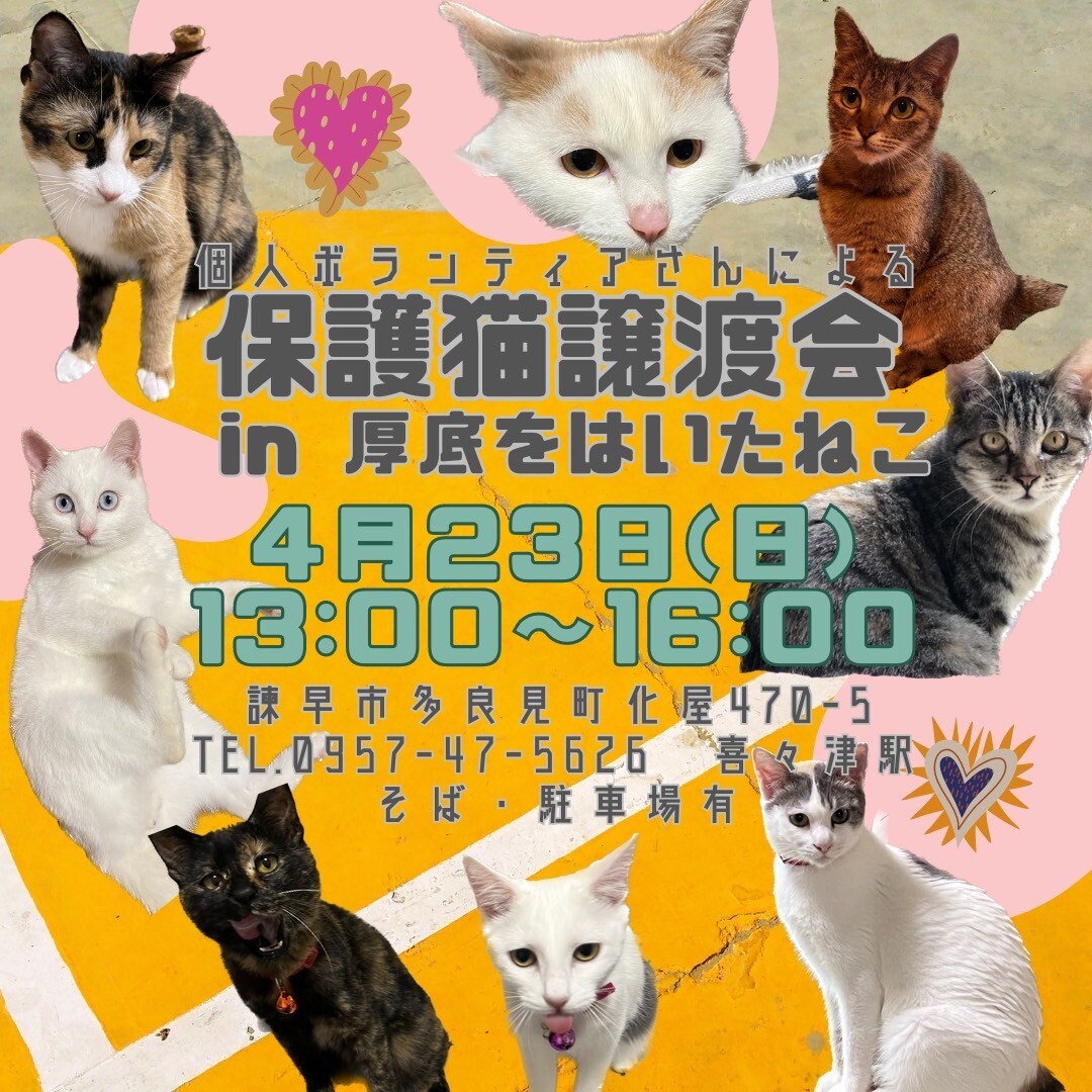 長崎の個人ボランティアによる保護猫譲渡会4月