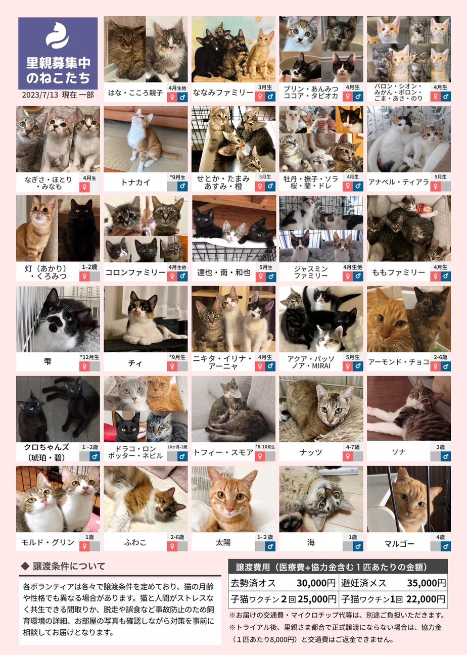 ※猫それぞれの月齢や保護主の考えにより、譲渡条件が加わる場合があります