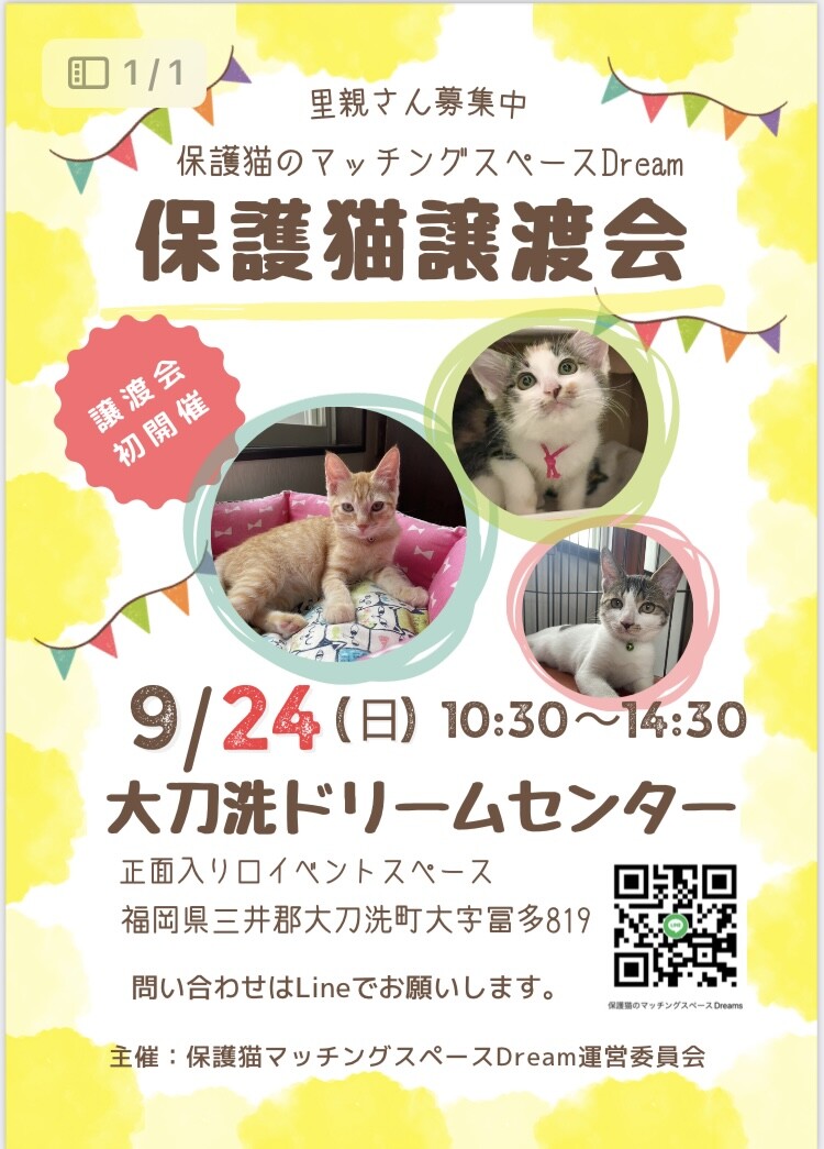 【大刀洗町⌘猫譲渡会】保護猫と家族のマッチングスペースDreams