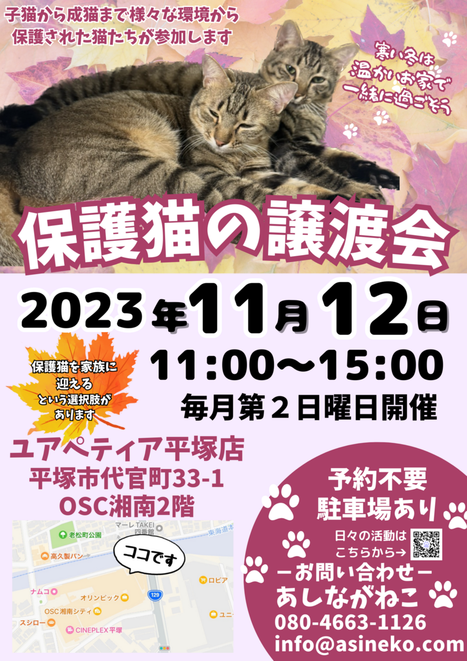※当日は猫を連れて帰る事はできません。