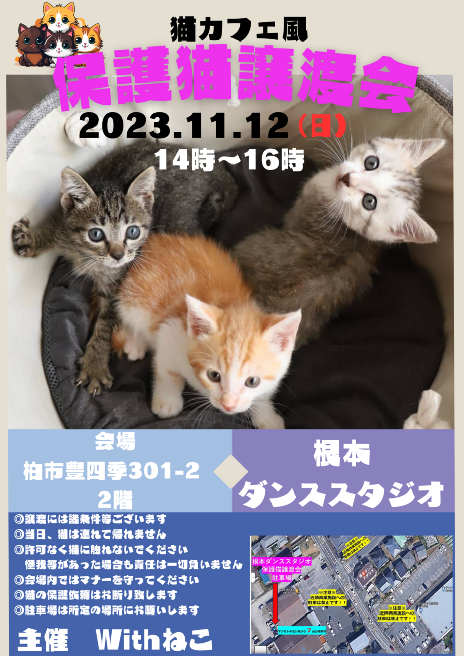 ☆猫カフェ風☆根本ダンススタジオ保護猫譲渡会