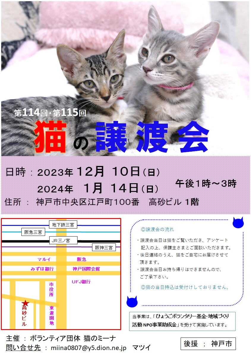 子猫の譲渡会in神戸三宮 ¨ 猫のミーナ ¨