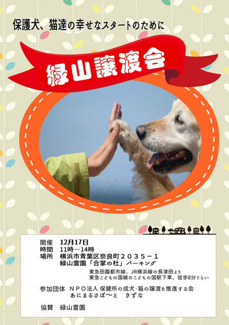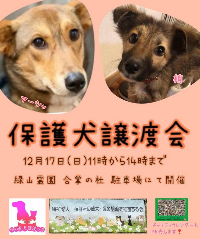 新年初の譲渡会1月18日「日曜日」緑山譲渡会を開催致します。AM11時~PM2時。緑山霊園パーキングにて。寒い時期ですので皆様も温かくされてワンちゃん達に...