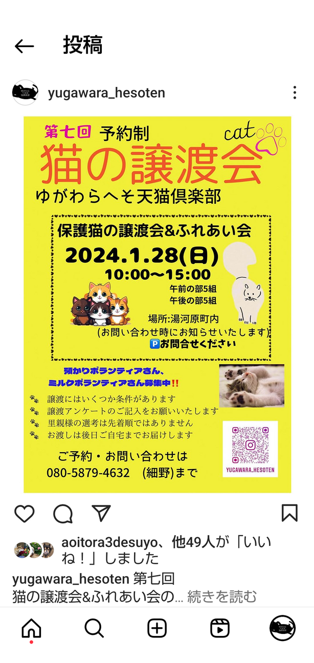 神奈川県湯河原駅より徒歩5分海に向かって歩いた郵便局の裏側辺りで開催です。可愛い子猫、成猫が参加します。ベテランスタッフ、預かりスタッフからゆっくり日々の...