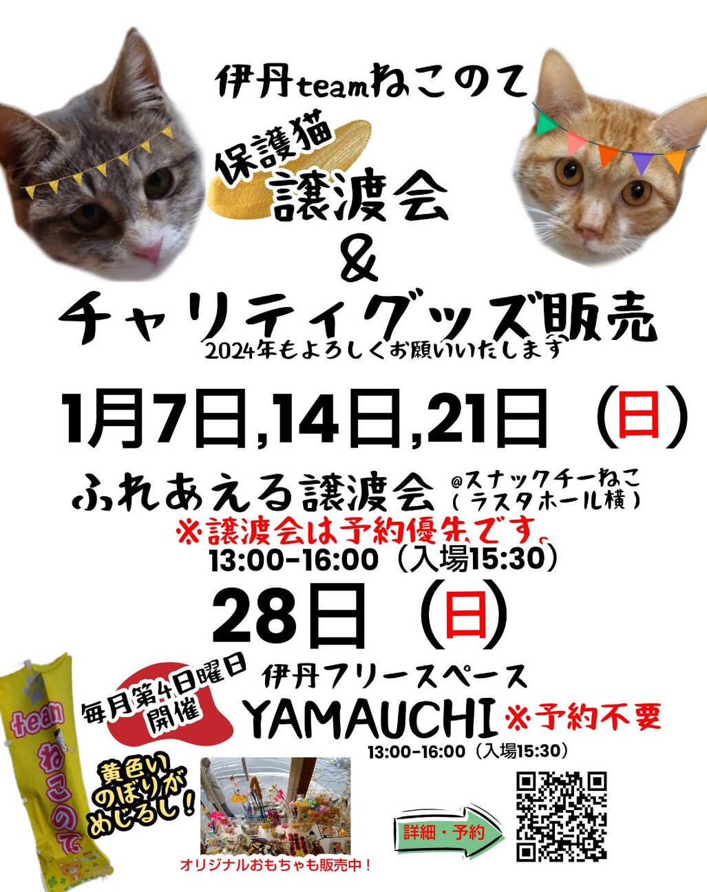 兵庫県伊丹YAMAUCHI【予約不要】保護猫譲渡会&チャリティグッズ販売猫の譲渡会
