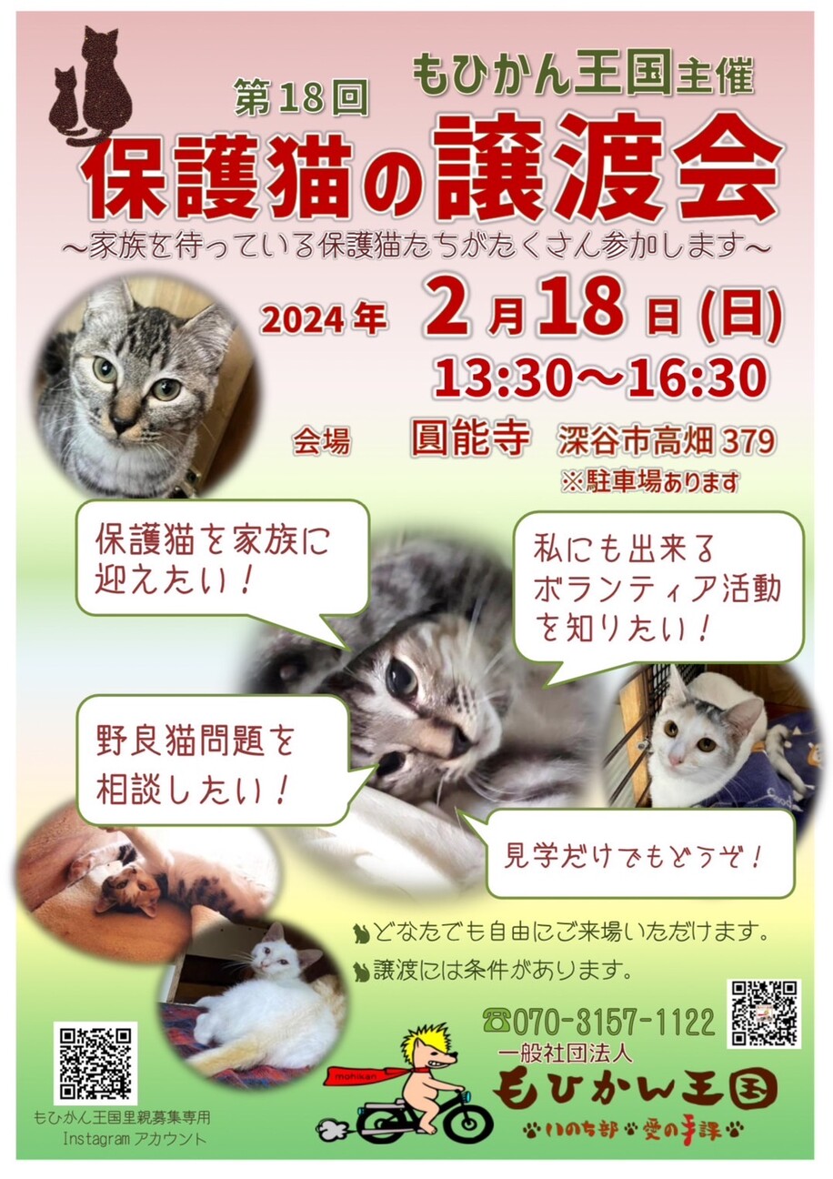 もひかん王国の譲渡会は個人保護主さんや野良猫などから保護し、大切にお世話した子たちの一生のお家を探す譲渡会です。保護猫をお迎えすることを検討されている方は...