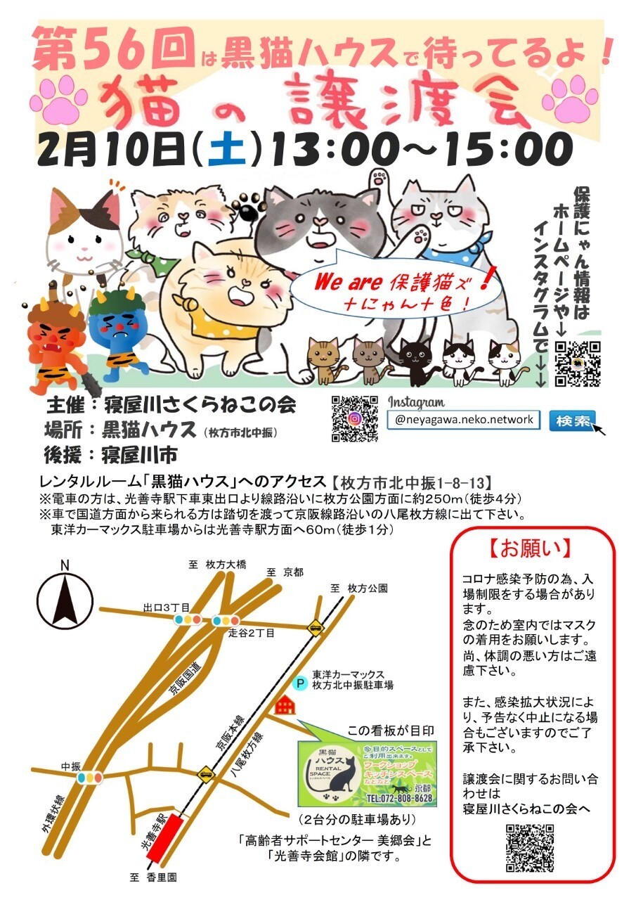 寝屋川・枚方等で隔週で譲渡会を開催しています。