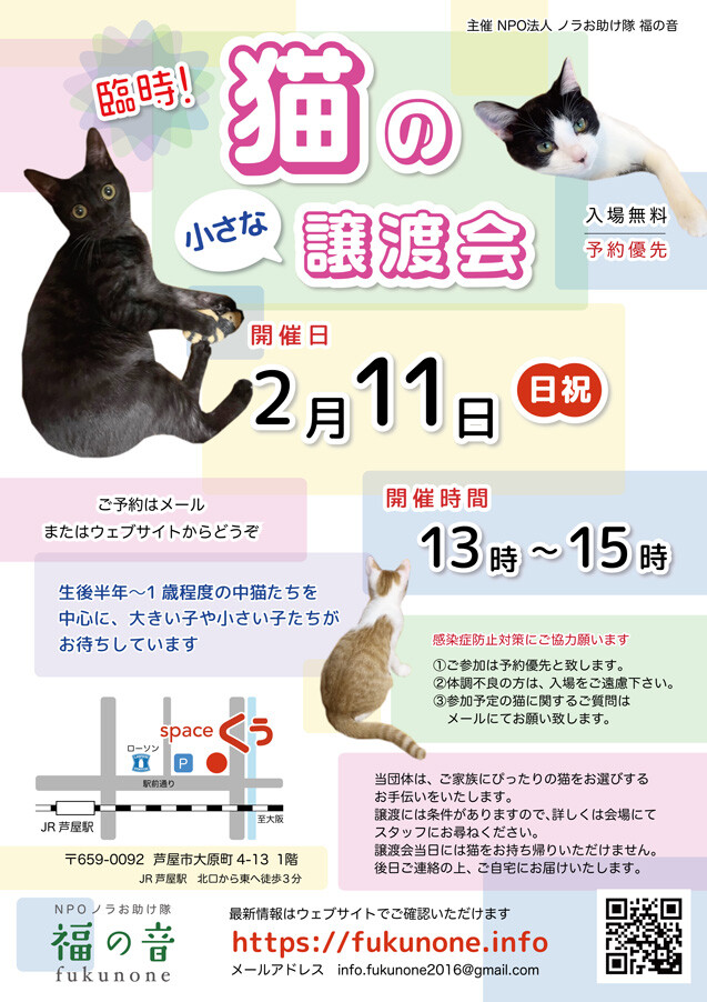 【2/11(日祝) 【臨時!】猫の小さな譲渡会】