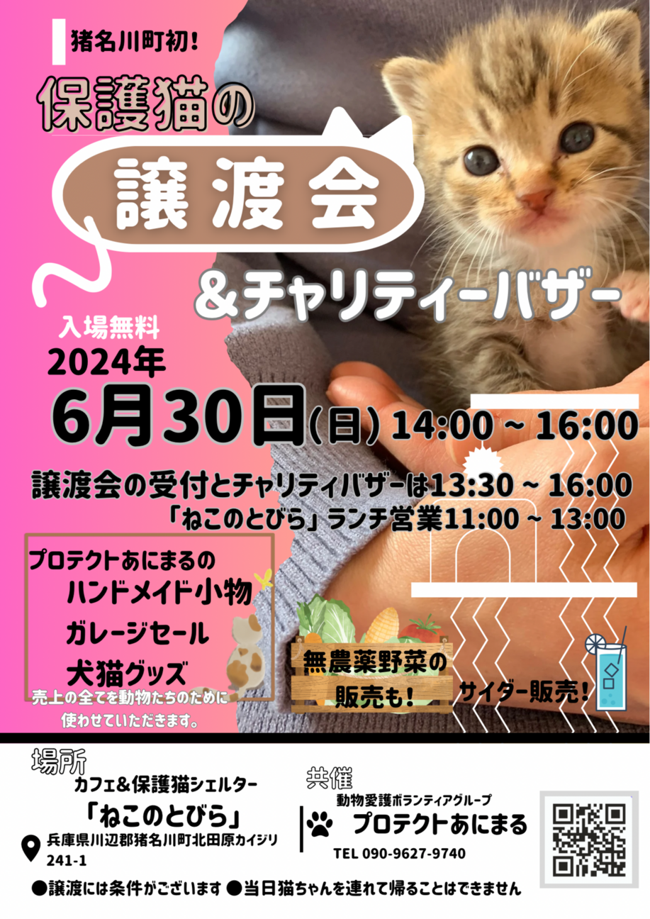 6月30日(日)保護猫の譲渡会やります!