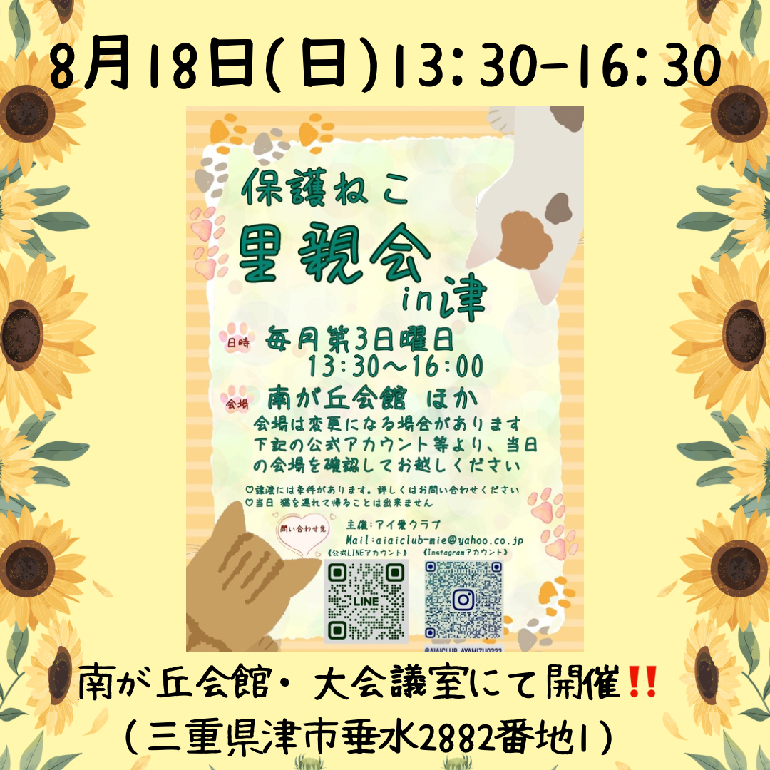 こんにちは☺️私達は三重県津市にて猫の保護活動をしているアイ愛クラブと申します