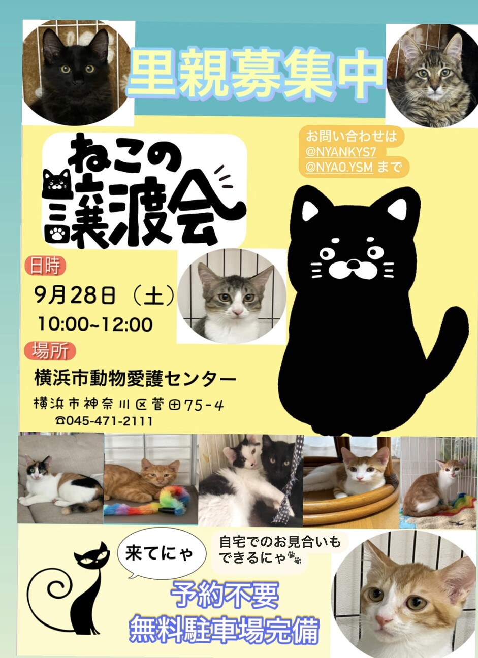 個人ボランティア数人で開催しています仔猫から成猫まで参加予定(当日の体調などで変化あり)予約不要無料駐車場多数あり当日連れて帰る事はできません譲渡には条件...