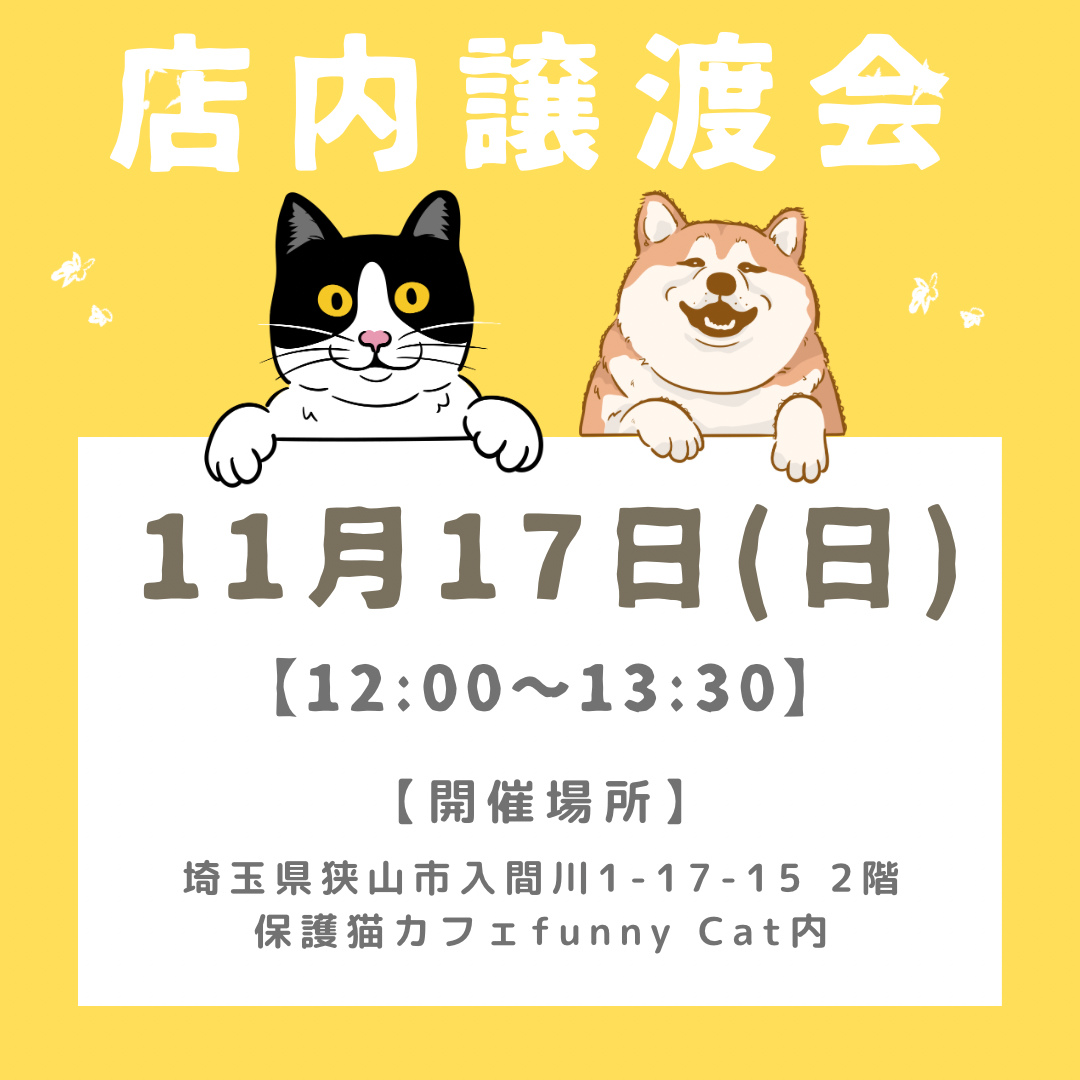 犬と猫の店内譲渡会【入場料無料⭐️予約不要】