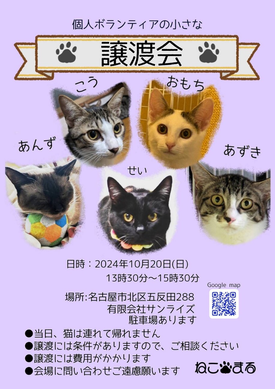 素敵なご縁を頂きまして犬山市市民活動団体福猫の里犬山さんの猫の譲渡会にセイちゃんを連れて参加させて頂けることになりました