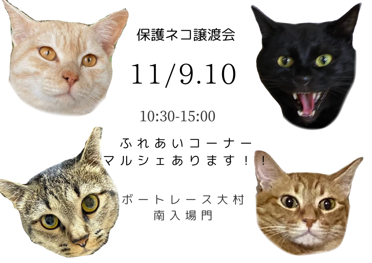 長崎県大村市幸町で保護ネコ譲渡会を開催します